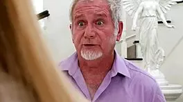 Hot curvy teen gives stepgrandpa facial for favors!