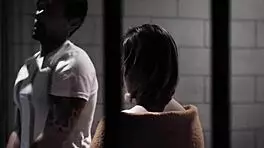 A busty thief caught between two cops in prison
