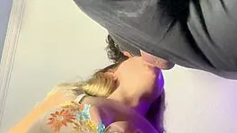 Sassy petite blonde deepthroats and rims to swallow cum