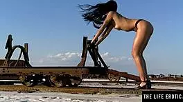hispanic teen fingers pussy to orgasm in desert