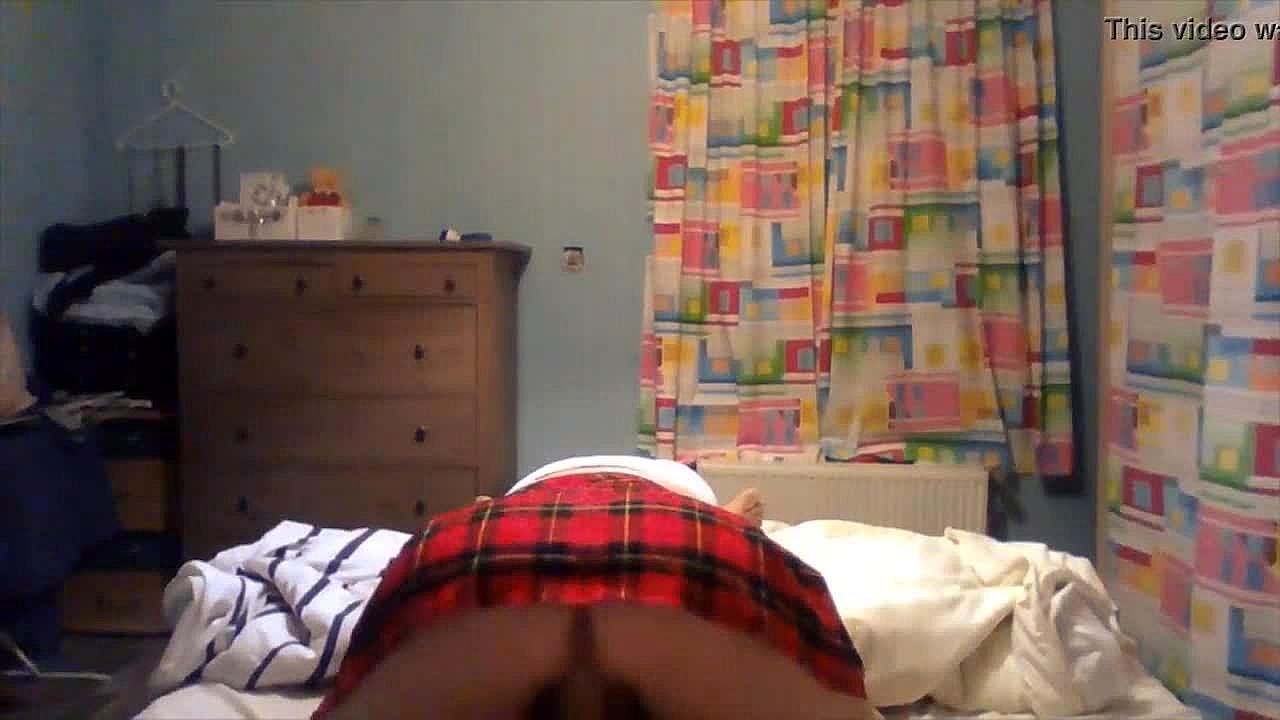 Cosplay schoolgirl in stockings rides on sofa, can't hold back creampie