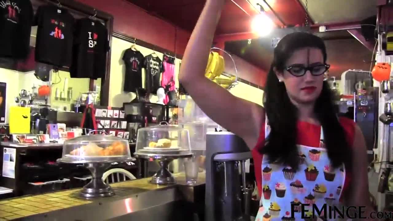 feminge 4k - 金发继妹被诱惑到咖啡馆用假阳具玩弄,观看她呻吟!