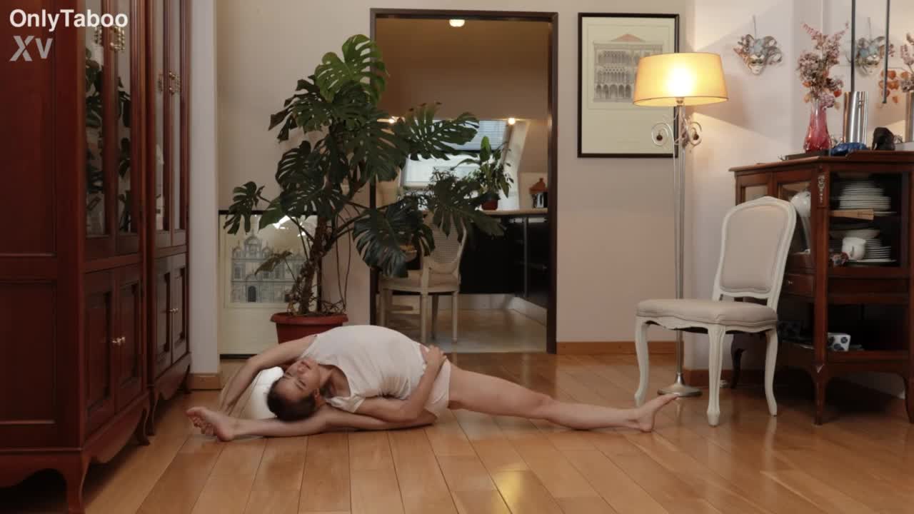 她在视频上的第一次裸体体操伸展