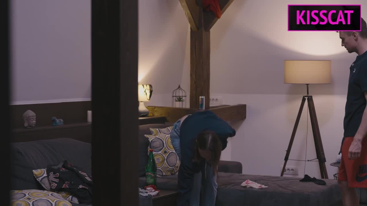 Busty young 18+ maid screwed by old couple in hardcore doggystyle.